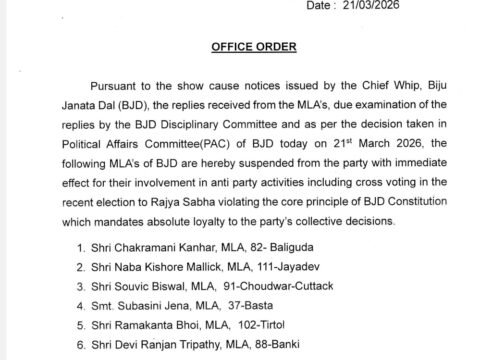 ମହଙ୍ଗା ପଡ଼ିଲା କ୍ରସ୍ ଭୋଟିଂ: ବିଜେଡିର ୬ ବିଧାୟକ ନିଲମ୍ବିତ