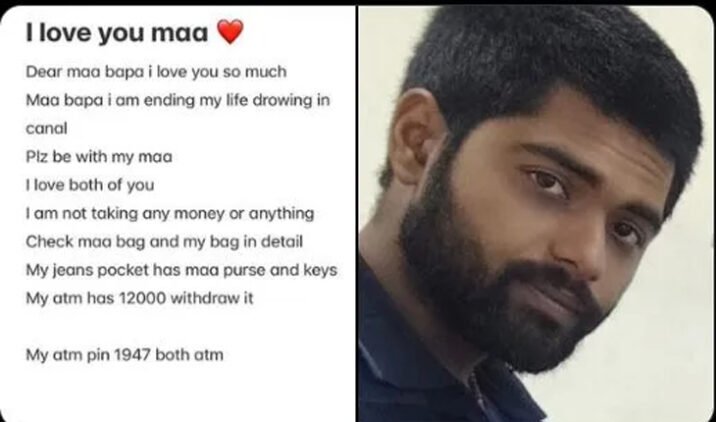ଯିବା ପୂର୍ବରୁ ମା’ଙ୍କ କଷ୍ଟ ତାଙ୍କ ପାଇଁ ଅସହ୍ୟ ହେଉଥିବା ନେଇ ଏକ ବାର୍ତ୍ତା ଅସୁସ୍ଥ ମା’ଙ୍କ ମୋବାଇଲକୁ ପଠାଇଥିବା ଜଣାଯାଇଛି । ଯେଉଁଥିରେ ସେ ସ୍ପଷ୍ଟ ଭାବେ ଉଲ୍ଲେଖ କରିଛନ୍ତି, ବାପା ଓ ବୋଉ ମୁଁ ତୁମକୁ ବହୁତ ଭଲ ପାଉଛି । ମୁଁ କେନାଲରେ ମୋ ଜୀବନ ହାରିବାକୁ ଯାଉଛି । ମୁଁ କୌଣସି ଟଙ୍କା ନେଇନାହିଁ । ମୋ ବ୍ୟାଗରେ ସମସ୍ତ ତଥ୍ୟ ଉପଲବ୍ଧ ରହିଛି । ଏଟିଏମରେ ୧୨ ହଜାର ଟଙ୍କା ରହିଛି ଉଠାଇଦେବ ବୋଲି ସୁରଜ କହିଛନ୍ତି ।