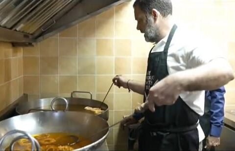 ହଠାତ୍ ମିଠା ଦୋକାନରେ ପହଞ୍ଚିଲେ କଂଗ୍ରେସ ସାଂସଦ; ଇମାରତି ଓ ବେସନ ଲଡ୍ଡୁ ନିଜ ହାତରେ ତିଆରି କରି ଚର୍ଚ୍ଚାରେ ରାହୁଲ