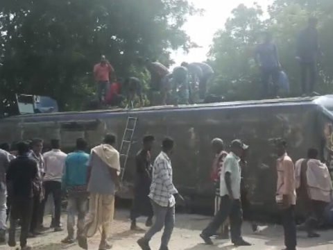 ଭାରସାମ୍ୟ ହରାଇ ଓଲଟିଲା ଯାତ୍ରୀବାହୀ ବସ୍: ଜଣେ ମୃତ, ୩୦ରୁ ଅଧିକ ଆହତ