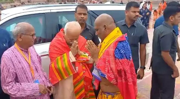 ଭୁବନେଶ୍ୱର,୯/୮(ସତ୍ୟପାଠ ବ୍ୟୁରୋ): ପୁରୀରେ ଜଗଦଗୁରୁ ଶଙ୍କରାଚାର୍ଯ୍ୟଙ୍କୁ ଭେଟିଲେ ଆରଏସଏସ ସରସଂଘ ଚାଳକ ମୋହନ ଭାଗବତ। ୫ ଦିନିଆ ଓଡ଼ିଶା ଗସ୍ତରେ ଆସିଛନ୍ତି ମୋହନ ଭାଗବତ। ସକାଳୁ ଶ୍ରୀମନ୍ଦିର ଯାଇ ମହାପ୍ରଭୁଙ୍କ ଦର୍ଶନ କରିଥିଲେ। ସିଂହଦ୍ବାର ନିକଟରେ ତାଙ୍କୁ ବରିଷ୍ଠ ସେବାୟତମାନେ ଖଣ୍ଡୁଆ ଦେଇ ସ୍ବାଗତ କରିଥିଲେ । ମନ୍ଦିର ଭିତରେ ଶ୍ରୀଜିଉଙ୍କର ଦର୍ଶନ ସହ ମା’ ବିମଳା ଓ ମହାଲକ୍ଷ୍ମୀଙ୍କର ଆଶୀର୍ବାଦ ନେଇଥିଲେ ମୋହନ ଭାଗବତ ।