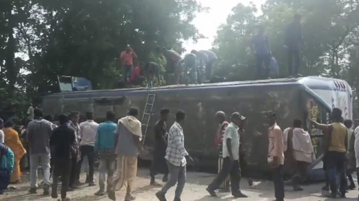 ଭାରସାମ୍ୟ ହରାଇ ଓଲଟିଲା ଯାତ୍ରୀବାହୀ ବସ୍: ଜଣେ ମୃତ, ୩୦ରୁ ଅଧିକ ଆହତ